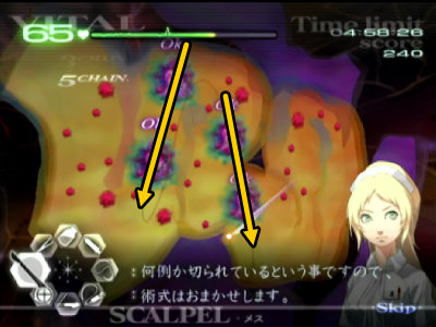 このステージではバイタルの減少が激しいので、処理に手間取りやすい場合は切開する前にバイタルを全回復させておきます。