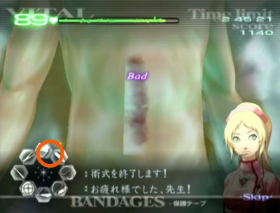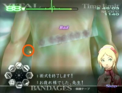 トーク待ちはゲーム全体を通して度々発生します。縫合の糸の操作や注射の最中などでも操作がキャンセルされてしまいます。トーク待ちを忘れているとプレイのテンポが崩されてしまうので、念頭においてプレイしましょう。