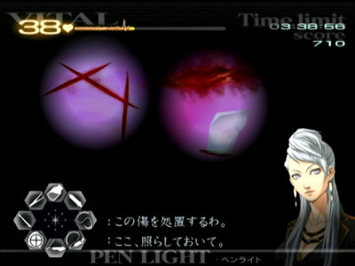 次に左上の裂傷を縫合します。縫合中にペンライトアイコンとポインターが重なってしまうと縫合がキャンセルされてしまうので十分に注意しましょう。